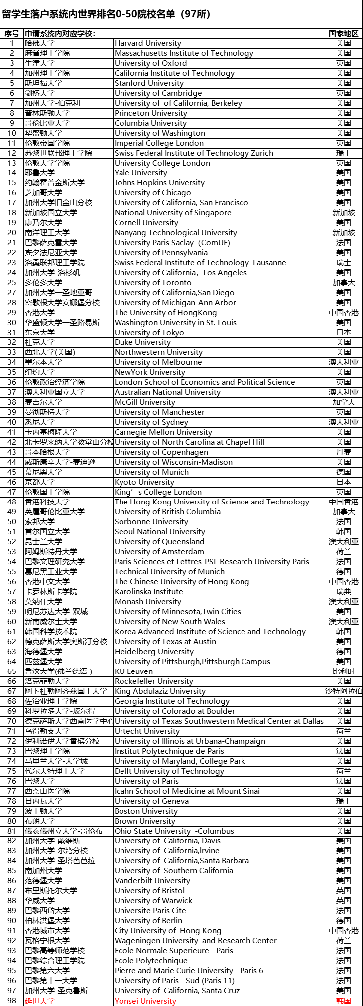 最新发布!QS世界大学0-100名单更新